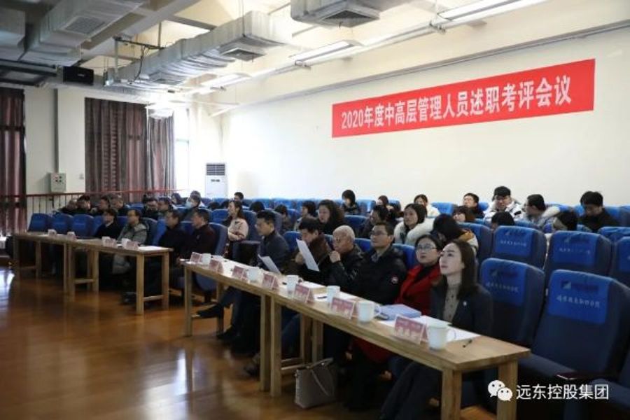 1. 1月10日,遠東控股集團2020年度中高層管理人員述職考評會議在智慧學堂圓滿舉行。遠東控股集團創始人、董事局主席、黨委書記蔣錫培,集團董事局副主席兼首席執行官、黨委副書記、電纜產業/電池產業/機場產業董事長蔣承志,投資人、集團黨委副書記、董事、遠東智慧能源股份有限公司(簡稱:遠東股份 股票代碼:600869)副董事長兼首席執行官蔣華君及其他董監高領導聽取了集團中高層管理人員述職報告,集團董事、首席人力資源官、遠東大學執行校長蔣承宏主持會議。報告會上,五位高管分管及多位中層述職人員以多媒體演示方式,對年度關鍵績效指標和重點工作完成情況做了系統的總結,并立足于崗位和業務實際反思工作中的不足之處,提出相應的改進措施。同時,對個人知識學習與能力提高情況進行客觀分析,對2021年度的工作計劃進行了詳盡的規劃和展望。