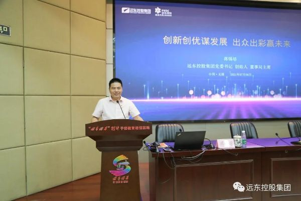 2.7月6日,無錫市國資系統黨組織書記能力提升暨黨史學習教育培訓班在中國企業管理無錫培訓中心舉行,該培訓班由無錫市國有資產監督管理委員會主辦,市國資委主任張建春,市國資委副主任、黨委委員趙民,市國資委組織人事處處長、四級調研員尤秀林,市國資委機關黨委專職副書記孫廣生,中國企業管理無錫培訓中心主任李建秋,中國企業管理無錫培訓中心副主任徐旻以及各集團黨委書記、專職副書記、組織人事部門負責人,子企業黨組織書記、國資委中層以上干部參加。遠東控股集團創始人、董事局主席、黨委書記蔣錫培受邀參加并授課。遠東股份運營中心區域客戶官田旭,遠東股份運營中心無錫招商城專賣店總經理楊亦勝,高級合伙人、遠東股份運營中心無錫新區專賣店總經理朱明佳,遠東股份運營中心客戶經理蔣杰陪同參會。會上,蔣錫培做《創新創優謀發展 出眾出彩贏未來》主題分享。
