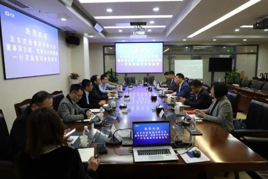 6.11月16日,遠東控股集團創始人、董事局主席、黨委書記蔣錫培率隊拜訪中國聯合工程有限公司(簡稱:中國聯合),與中國聯合黨委書記、董事長錢向東,中國聯合總經理、黨委副書記沈瑞宏,中國聯合生產經營部部長陸鋒、第二工業工程設計研究院院長蔡建平、新能源工程設計研究院院長趙光杰、電力工程設計研究院副院長錢懷洲、能源與環境工程公司總經理助理申宇、綜合管理部副部長吳懌哲座談,雙方就儲能電池等新能源領域業務達成共識。資深合伙人、遠東控股集團黨委委員、董事、遠東智慧能源股份有限公司(簡稱:遠東股份 股票代碼:600869)電纜產業執行總經理陳靜,高級合伙人、遠東股份電纜產業首席戰略客戶官賈海,遠東股份電纜產業戰略拓展官梅閃閃,高級合伙人、遠東股份電纜產業戰略拓展官兼執行總經理秘書汪樂,集團董事局主席秘書尹華杜,遠東股份電纜產業市場分析經理黨麗娟、戰略客戶服務經理王輝隨行。蔣錫培表示,遠東期待與中國聯合深度合作,持續深化探索合作模式,攜手帶動區域產業鏈發展,同時誠摯邀請中國聯合團隊來宜興考察交流。