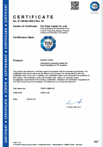遠東電纜憑借深厚技術積淀,率先通過中國質量認證中心(CQC)光伏直流電纜權威認證,樹立行業技術標桿。針對戶外極端環境挑戰,其創新研發的光伏電纜具備耐溫(-40℃至+120℃)、抗紫外線老化及無鹵阻燃等特性,通過濕熱、鹽霧等嚴苛測試,保障25年以上穩定運行壽命,為全球大型光伏電站提供高可靠性電力傳輸解決方案。