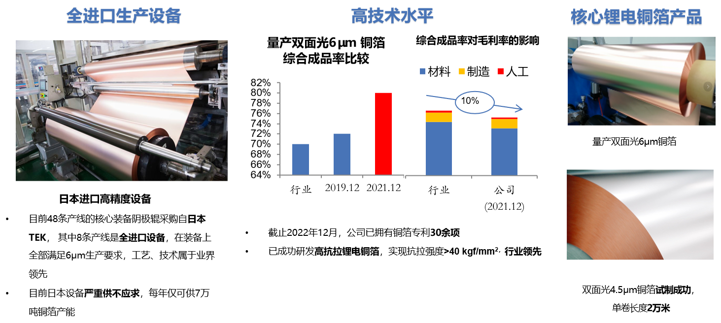 智能電池主營業務涵蓋儲能、輕出行、電動工具、智能家居等領域,全方位布局發電側儲能、工商業儲能、戶用儲能系統、便攜式移動電源等多元化的產品及解決方案矩陣,滿足多場景應用。公司專注于生產高精度超薄鋰電銅箔,主要用于高性能動力電池、儲能和數碼等領域,同時探索研發、布局復合銅箔、鋁箔等新產品領域,致力于成為全球銅箔龍頭企業。